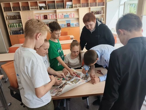 Но и про дело не забыли — ребята с энтузиазмом привели в порядок пришкольную территорию, а в библиотеке не только починили старые книги, но и устроили книжную сортировку — теперь каждый том снова готов к новым читателям!