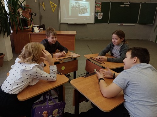 Беседа классных руководителей с детьми началась с просмотра и обсуждения видео, отражающего тему занятия. Ребята высказали своё мнение об уникальности профессии «учитель», поразмышляли, что было бы, если бы все учителя исчезли. Просмотр ролика «Мир без учителя» наглядно показал, каким бы был мир без учителей.