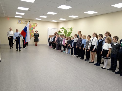 30 сентября 2024 года в Шутиловской основной школе новая учебная неделя традиционно началась с церемонии поднятия Государственного флага Российской Федерации и исполнения гимна Российской Федерации, а также внеурочного занятия «Разговоры о важном».