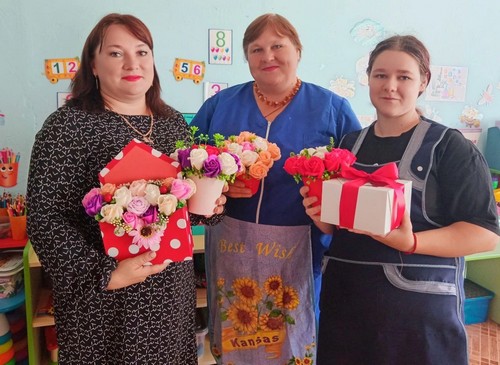 Активисты Движения Первых МАОУ «Шутиловская ОШ» с радостью поздравили работников детского сада с профессиональным праздником.