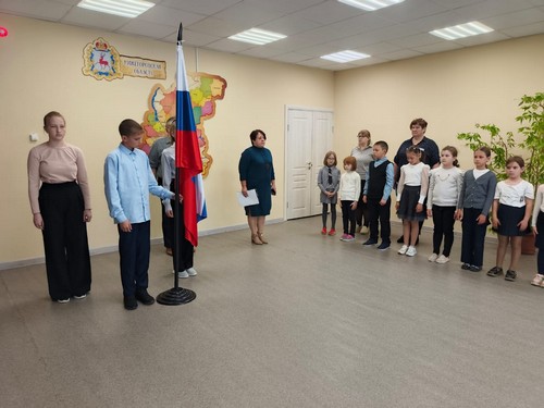 23 сентября 2024 года в Шутиловской основной школе новая учебная неделя традиционно началась с церемонии поднятия Государственного флага Российской Федерации и исполнения гимна Российской Федерации, а также внеурочного занятия "Разговоры о важном".