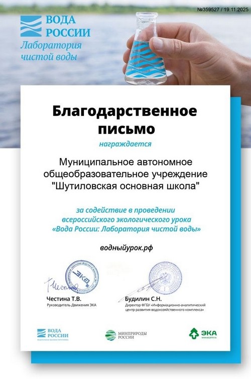 И финал, достойный оваций: учитель химии Крылова М.Н. получила заслуженный диплом, а наша МАОУ "Шутиловская ОШ" — благодарственное письмо за активную позицию в экопросвещении! Гордимся и вдохновляемся!